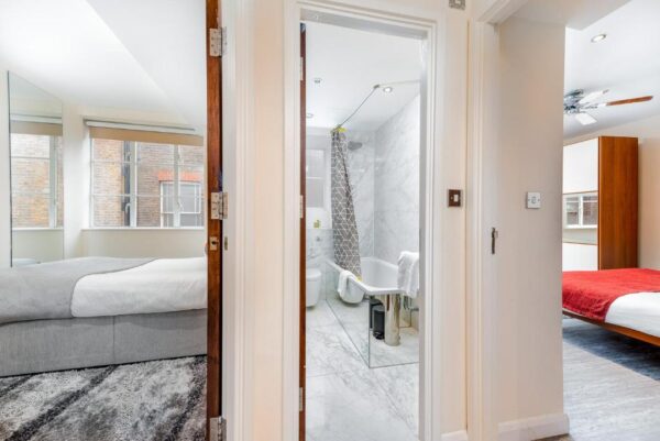 A spacious modern 2 bedrooms apartment available on the First floor, situated in the quiet and highly desirable area of South Kensington. Conveniently located less than 5 minutes walk from Gloucester Road and South Kensington tube stations and the amenities of the Fulham Road, this apartment is ideal for professionals looking for a pied-à-terre or for students studying at local institutions such as Imperial College London or The Royal College of Art.  Tenants benefit from 24 hour porterage, CCTV, secure entry system, lifts, internet, digital television and weekly linen and towel supply. There is also a free onsite residents gym and spa. All tenants benefit from a dedicated on-site building manager who is on hand to assist with any property related issues. Onsite dedicated team of maintenance experts and provide a 24-hour emergency helpline.