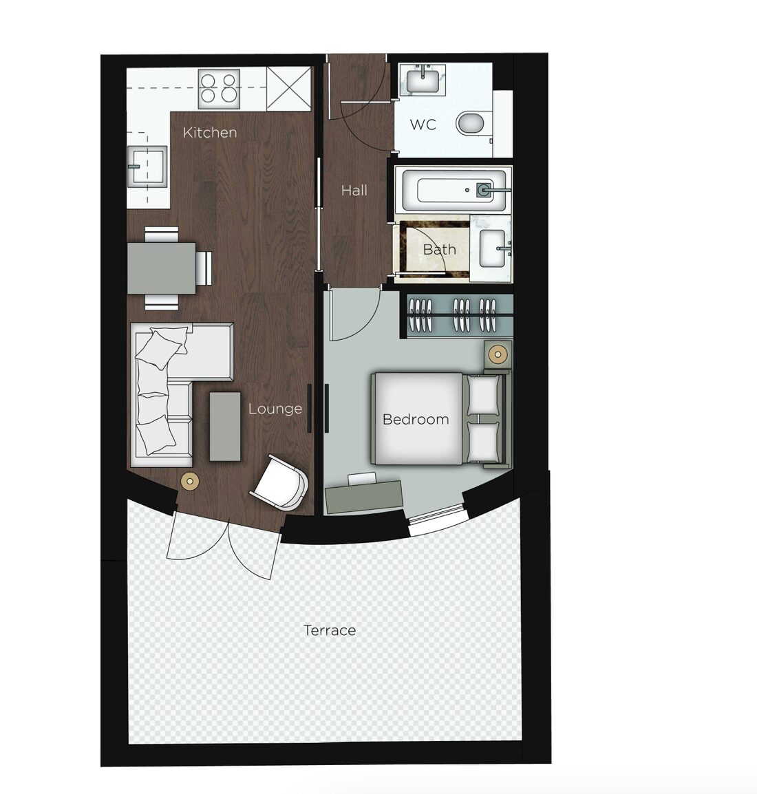 One Bedroom  2 Bathrooms Lower Ground Floor Size: 389 Sq ft