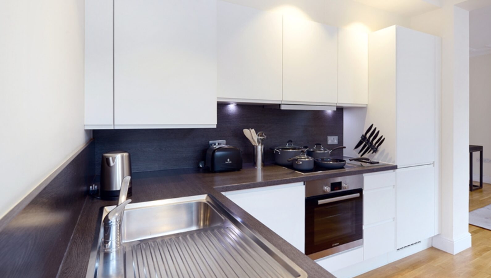 One bedroom - 1 bathroom- First floor Size: 554 sq ft This recently renovated one bedroom apartment features a modern bathroom and a bright open-plan living area. The fully fitted kitchen, equipped with integrated Bosch appliances, adds to the apartment's appeal. Located in a red brick Victorian mansion block, this modern apartment retains the traditional charm of the period property. With high ceilings, large sash windows, and wooden floors throughout, the apartment is furnished to the highest standard. Tenants also enjoy the convenience of a dedicated on-site building manager and a team of maintenance experts, as well as a 24-hour emergency helpline. The apartment offers a lovely view over Ravenscourt Park and benefits from an abundance of natural light.