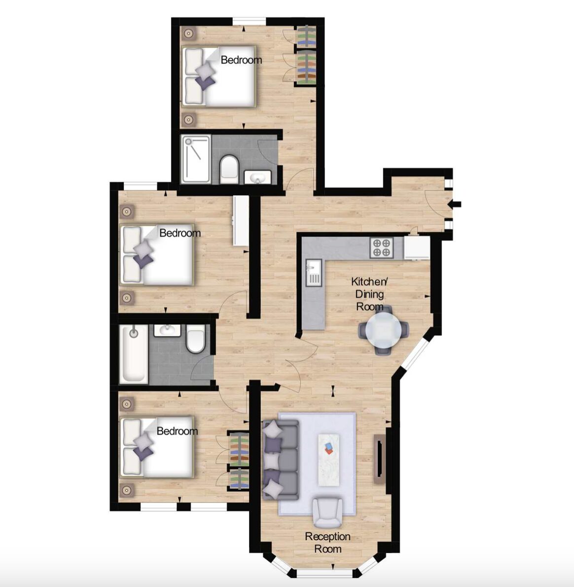 This newly renovated apartment in Hammersmith is situated on the second floor of a charming red brick Victorian Mansion block. It boasts three generously sized bedrooms with built-in wardrobes, and two of the bedrooms feature en-suite bathrooms. The spacious open plan reception room offers dual aspect views and seamlessly flows into a beautifully fitted Bosch kitchen. Throughout the apartment, you will find elegant wood flooring, as well as pre-installed Sky TV and Cat 4 cables for internet connectivity.