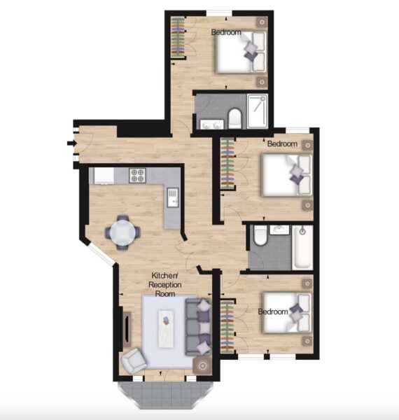 Three bedroom - 2 bathroom- Third floor Size: 965 sq ft
