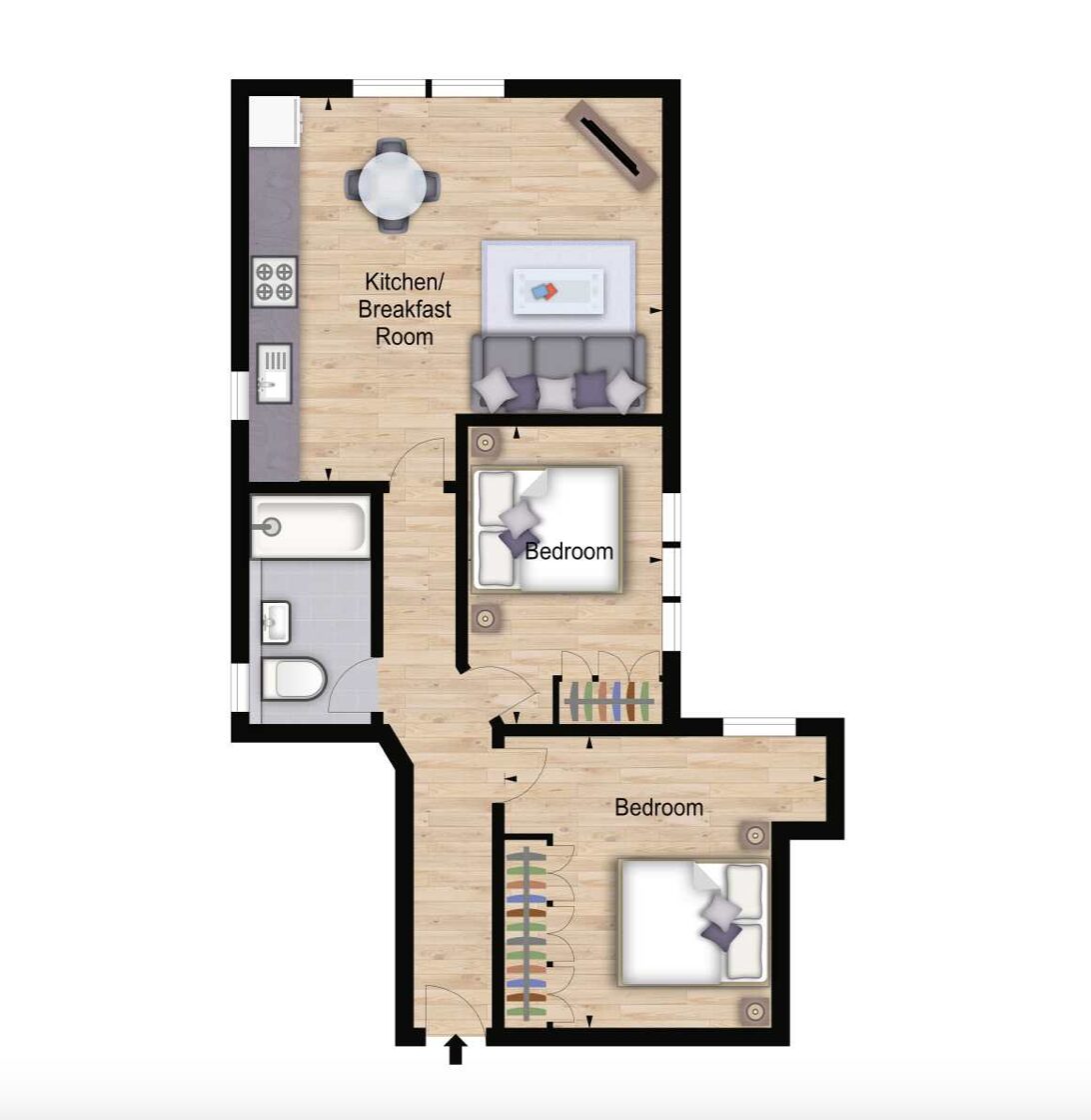 Impeccably adorned and meticulously completed, this apartment showcases a spacious open plan reception room that provides ample space for entertaining. It also features two generously sized double bedrooms, a contemporary guest bathroom with modern fittings, and an abundance of storage space.