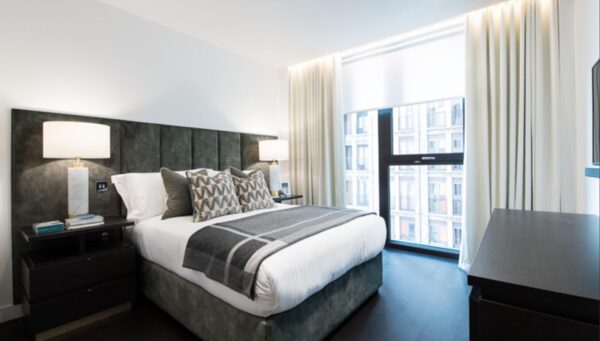 This stunning 902 Sq Ft two-bedroom, two-bathroom apartment has been beautifully designed with an impressive interior. It is located in Thornes House, which is part of The Residence Collection in Nine Elms on London's renowned South Bank.