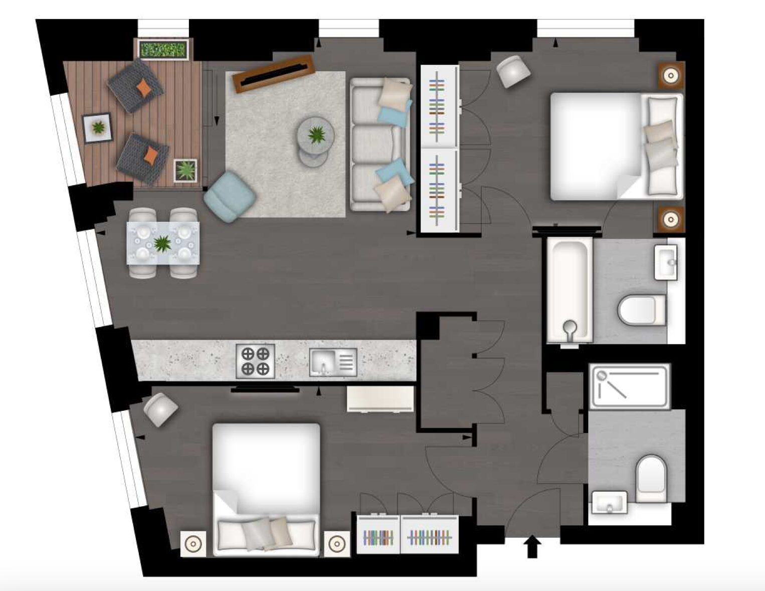 Two Bedrooms 2 Bathrooms Second Ground Floor Size: 770 Sq ft