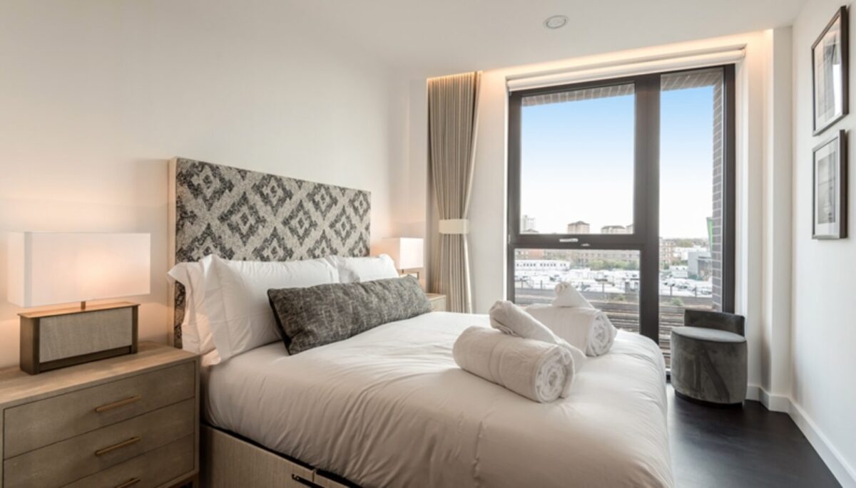 Situated in a sophisticated Manhattan loft-style development, this contemporary apartment boasts two bedrooms and two bathrooms, with an interior design that exudes elegance. The private balconies offer stunning panoramic views, while the luxurious amenities add to the overall appeal. Located in the heart of Nine Elms, London's vibrant riverside district, Apartment is conveniently close to the American Embassy and Battersea Power Station. Despite its prime location, the apartment allows for quick access to central London. The spacious reception room features Samsung Smart TVs with Bose sound bars, and a private winter garden that serves as an additional living area. The open-plan reception room seamlessly connects to a fully fitted kitchen, equipped with integrated AEG appliances and floor-to-ceiling windows that showcase the breathtakingly views of London. The apartment comprises two double bedrooms and two bathrooms, including an en-suite bathroom in the master bedroom. Ample storage space is also available. Tenants of Thornes House enjoy the services of a dedicated building manager, who is readily available to address any property-related concerns. Additionally, a team of maintenance experts is employed, and a 24-hour emergency helpline is provided for added convenience.